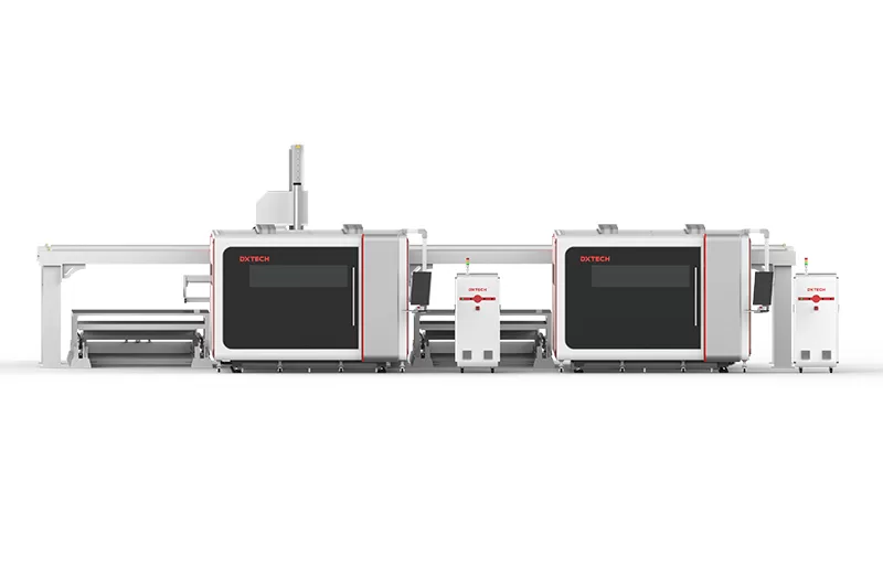 Otomatik yükleme ve boşaltma cihazı ile donatılmış iki MAT serisi lazer kesim makinesi