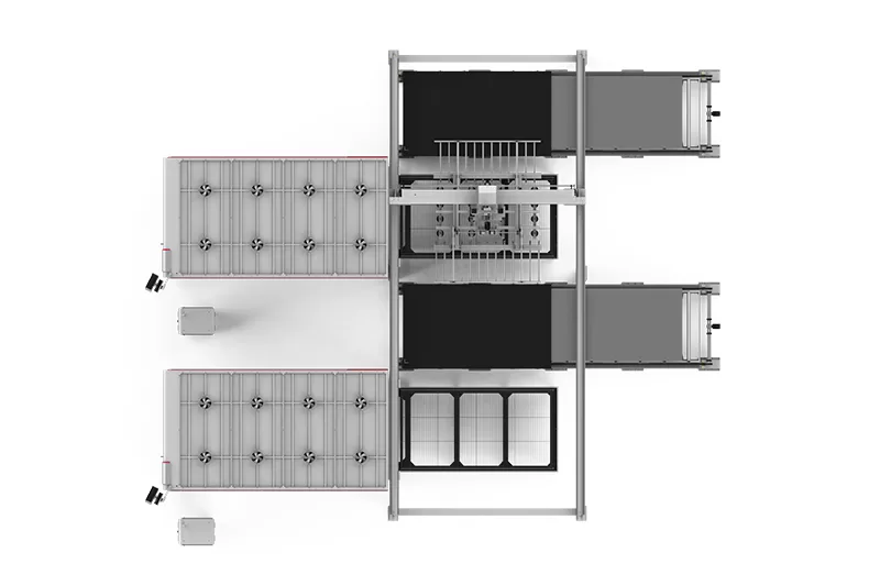 2) Depoya otomatik aktarımı gerçekleştirebilen ve küçük, orta, büyük ve çeşitli plakaların ihtiyaçlarını karşılayabilen hammadde tepsileri ve bitmiş malzeme tepsileri ile donatılmıştır.